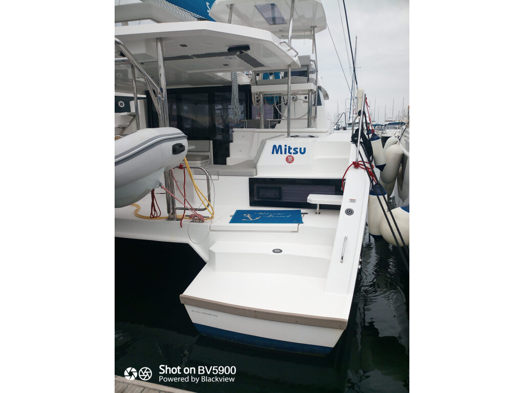 Catamaran Leopard 42 Mitsu, built in 2022 is anchored in the Sardinia, Cannigione, Italy - Sardinia, Italy. It has 4 cabins, can accommodate 8 + 2 people and has 4 toilets. Bed linen and kitchen equipment are included in the price.