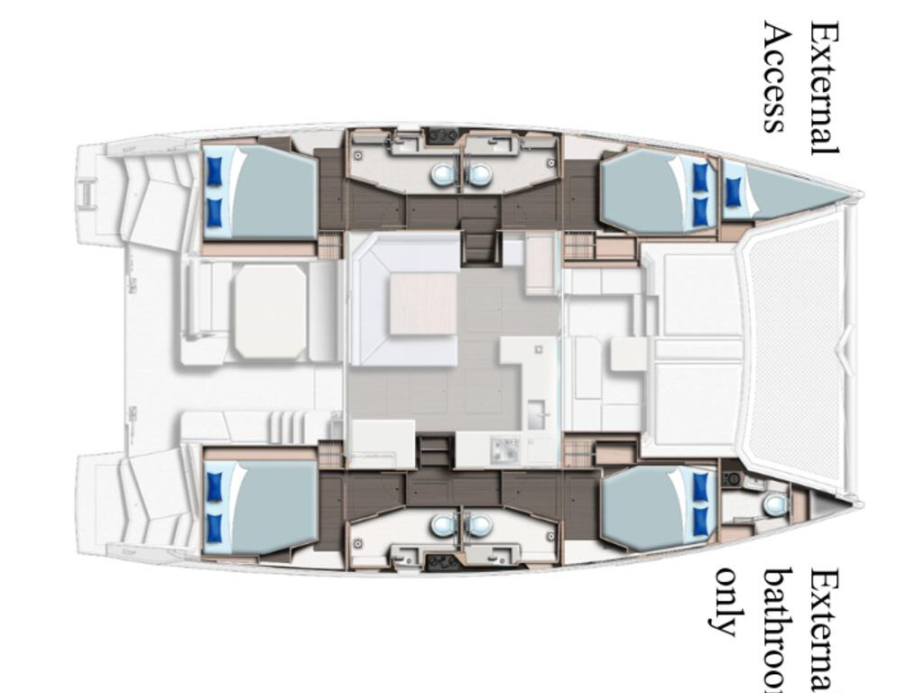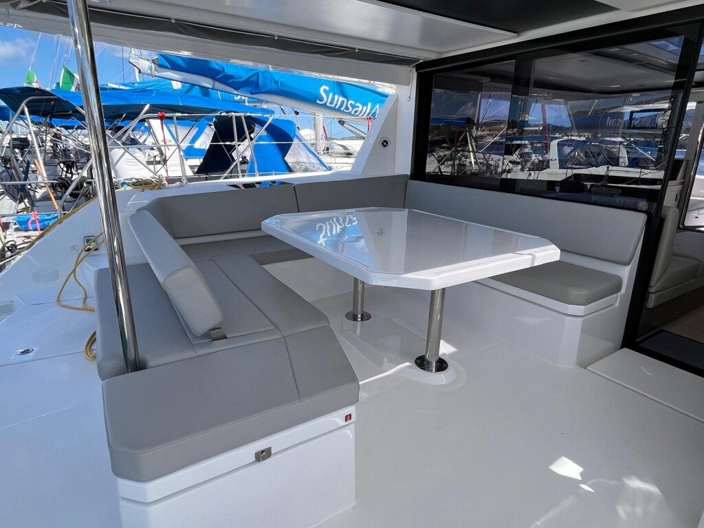 Catamaran Leopard 45 Chrispy 2, built in 2024 is anchored in the Sardinia, Cannigione, Italy - Sardinia, Italy. It has 4 + 1 cabins, can accommodate 8 + 2 + 1 people and has 4 + 1 toilets. Bed linen and kitchen equipment are included in the price.