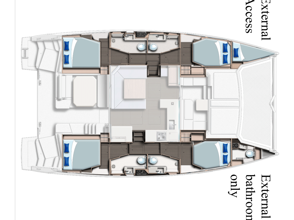 Catamaran Leopard 45 Lady Lety, built in 2023 is anchored in the Procida, Italy - Campania, Italy. It has 4 + 1 cabins, can accommodate 8 + 2 + 1 people and has 4 + 1 toilets. Bed linen and kitchen equipment are included in the price.