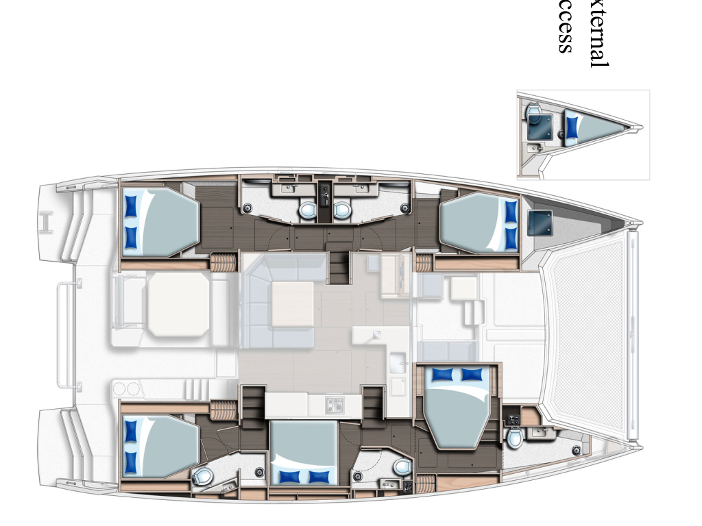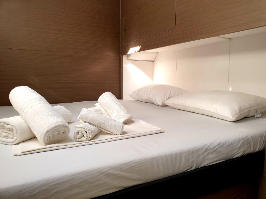 Catamaran Leopard 50 Edoardo, built in 2023 is anchored in the Sardinia, Cannigione, Italy - Sardinia, Italy. It has 5 + 1 cabins, can accommodate 10 + 2 people and has 5 toilets. Bed linen and kitchen equipment are included in the price.