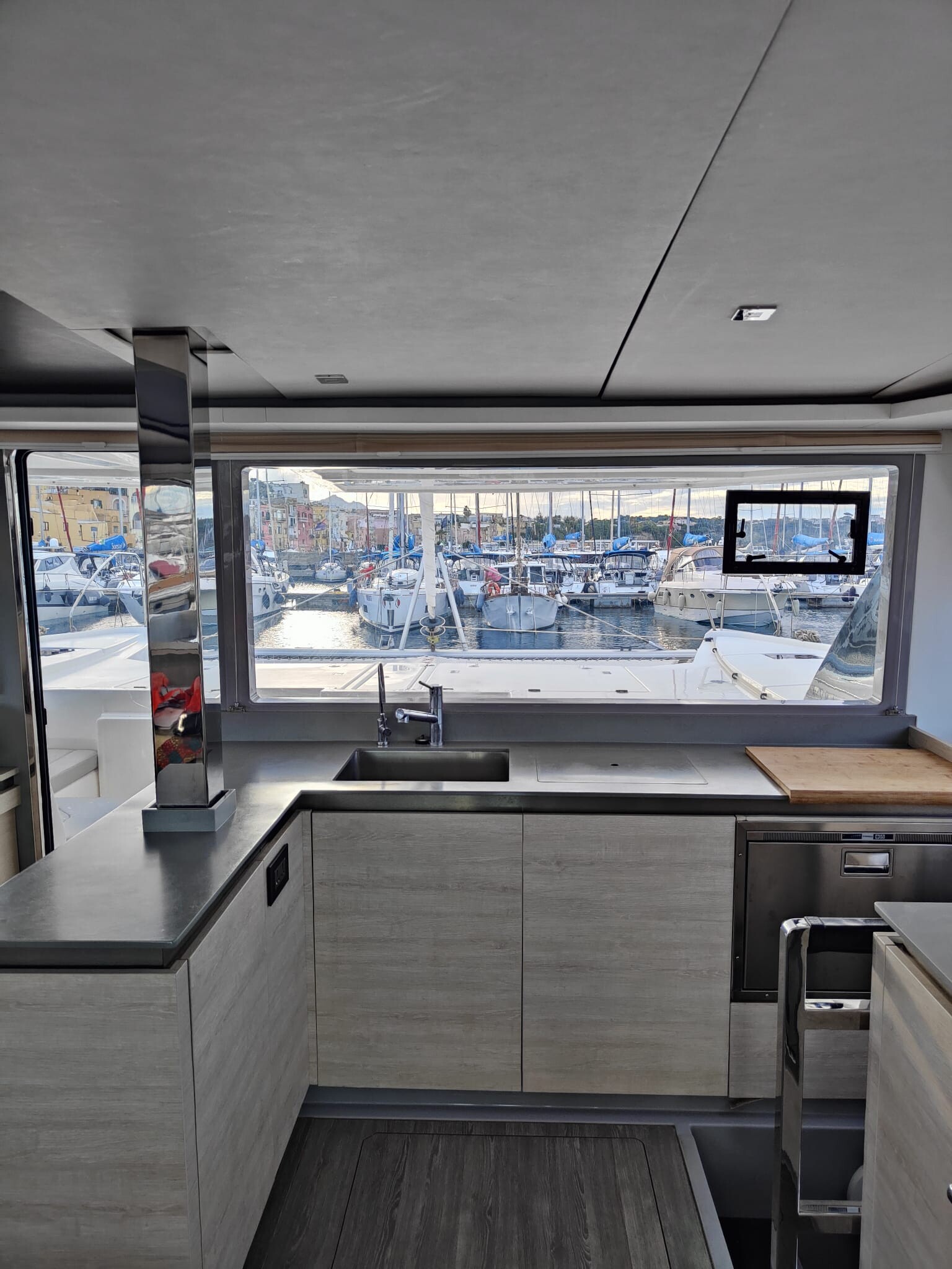 Catamaran Leopard 50 La Suerte, built in 2020 is anchored in the Procida, Italy - Campania, Italy. It has 5 + 1 cabins, can accommodate 10 + 1 + 1 people and has 5 toilets. Bed linen and kitchen equipment are included in the price.