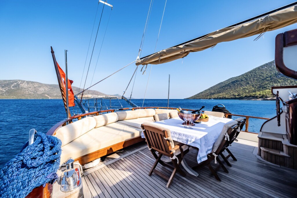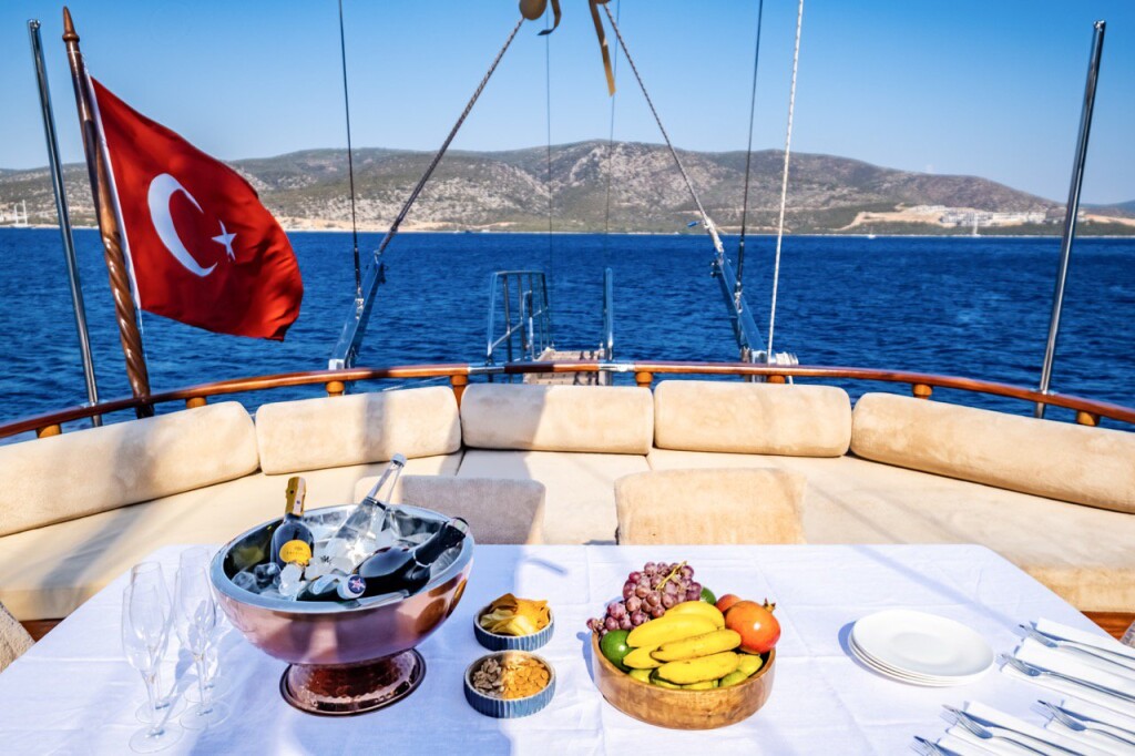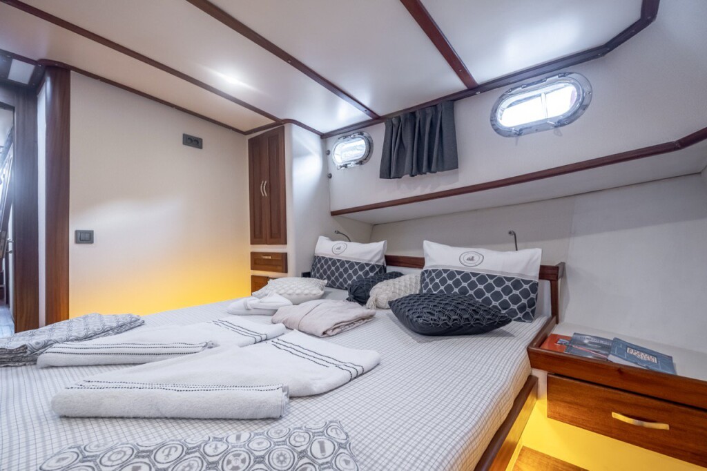 Gulet Leylali Leylali, built in 2000 is anchored in the Bodrum Harbour, Turkey - Aegean, Turkey. It has 5 + 2 cabins, can accommodate 10 + 4 people and has 5 toilets. Bed linen and kitchen equipment are included in the price.