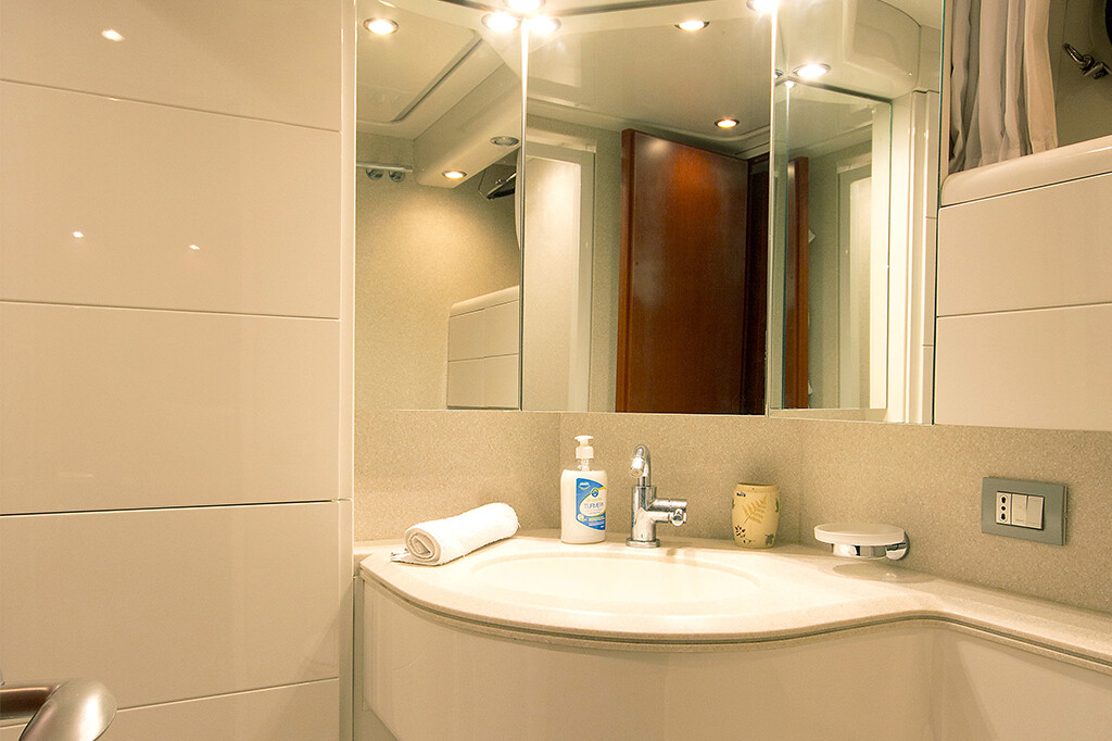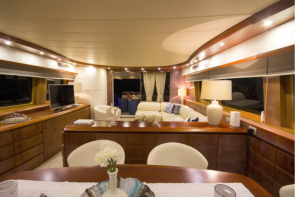 Luxury motor yacht Maiora 24 Caelum, built in 2003 is anchored in the Bodrum Harbour, Turkey - Aegean, Turkey. It has 3 + 1 cabins, can accommodate 6 + 2 people and has 3 toilets. Bed linen and kitchen equipment are included in the price.