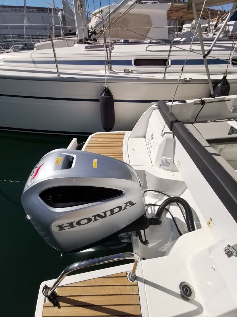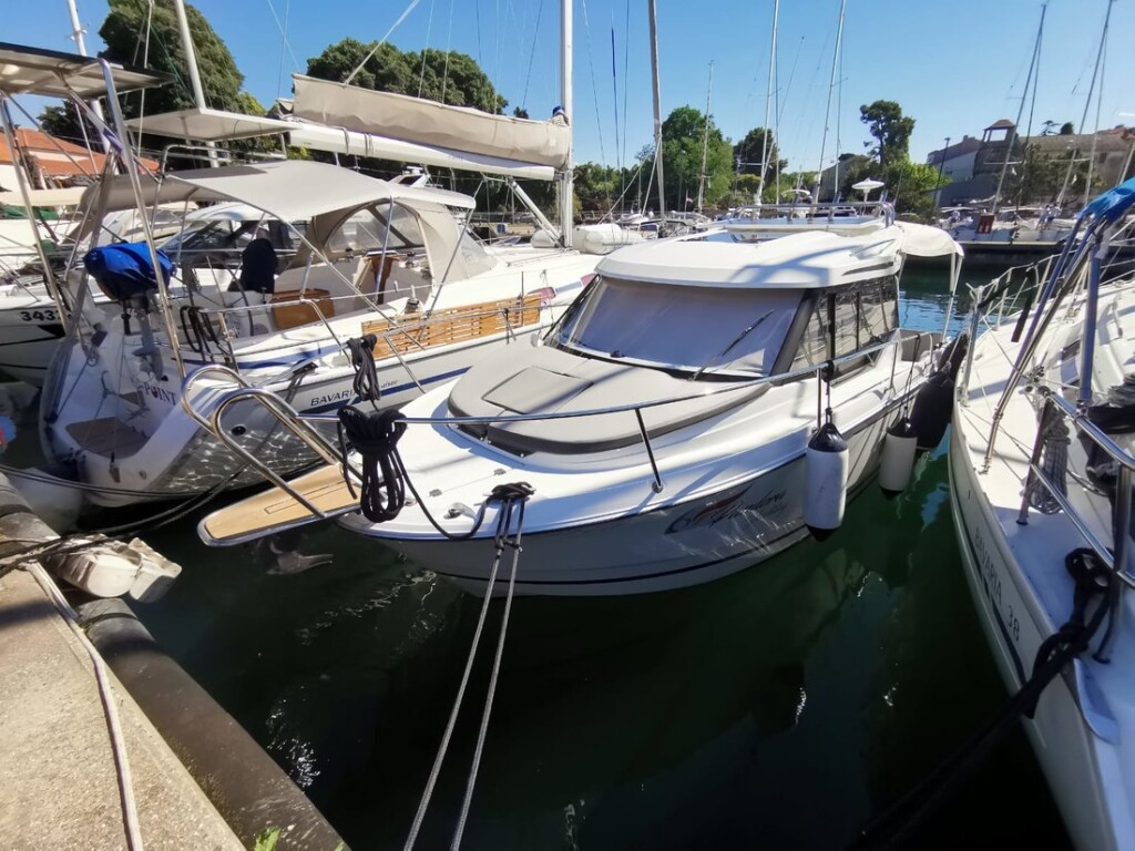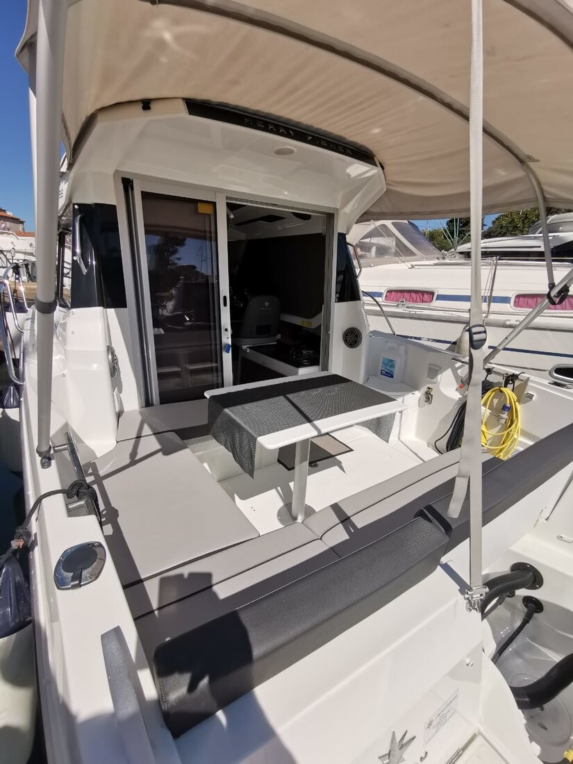 Motor boat Merry Fisher 795 Malizia, built in 2019 is anchored in the Marina Zadar (ex. Tankerkomerc), Croatia - Zadar, Croatia. It has 1 cabins, can accommodate 2 + 2 people and has 1 toilets. Bed linen and kitchen equipment are included in the price.