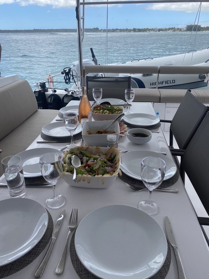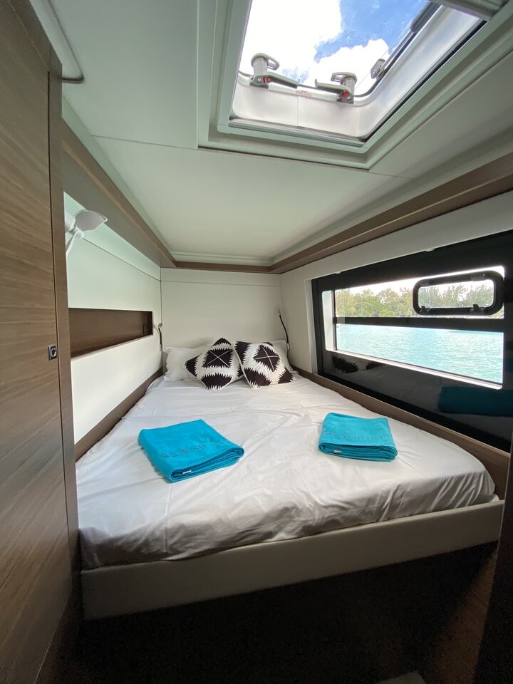 Catamaran Nautitech 46 Sea Spirit II, built in 2019 is anchored in the La Balise Marina, Mauritius, Mauritius - Mauritius, Mauritius. It has 4 + 2 cabins, can accommodate 8 + 2 people and has 4 toilets. Bed linen and kitchen equipment are included in the price.