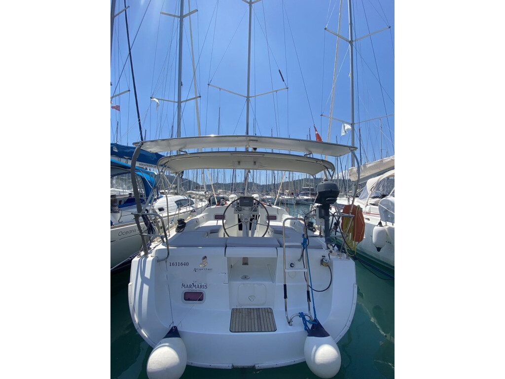 Sailing yacht Oceanis 34 Aquamarine, built in 2010 is anchored in the Fethiye, Ece Saray Marina Resort, Turkey - Aegean, Turkey. It has 3 cabins, can accommodate 6 people and has 1 toilets. Bed linen and kitchen equipment are included in the price.