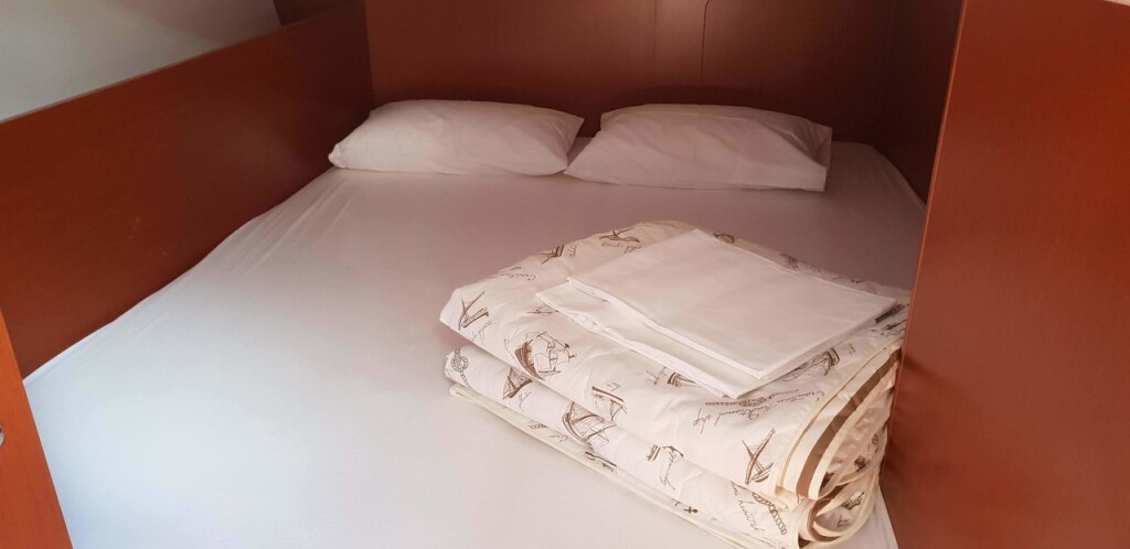 Sailing yacht Oceanis 38.1 Bellona, built in 2018 is anchored in the ACI Marina Split, Croatia - Split, Croatia. It has 3 cabins, can accommodate 6 + 2 people and has 2 toilets. Bed linen and kitchen equipment are included in the price.