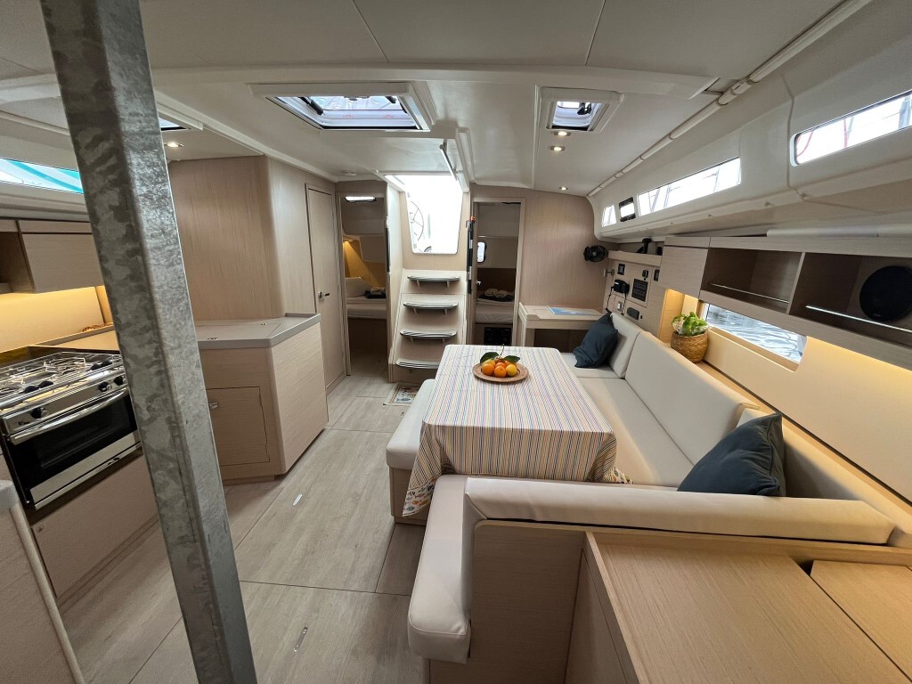 Sailing yacht Oceanis 40.1 Cosmic Dancer, built in 2023 is anchored in the ACI Marina Split, Croatia - Split, Croatia. It has 3 cabins, can accommodate 6 + 2 people and has 2 toilets. Bed linen and kitchen equipment are included in the price.