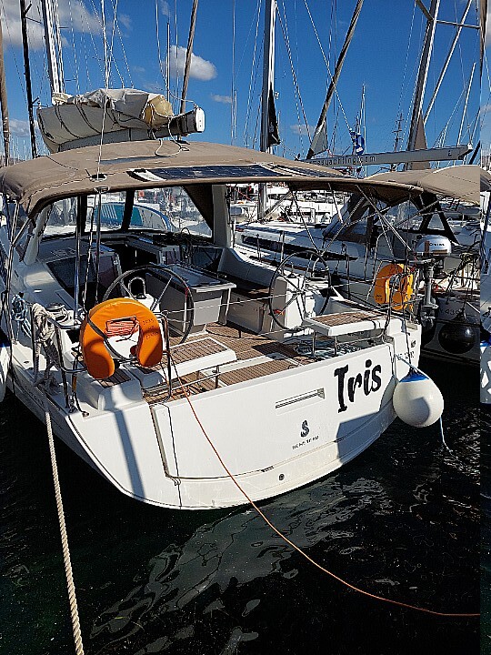 Sailing yacht Oceanis 41.1 Iris, built in 2020 is anchored in the Athens, Alimos marina, Greece - Peloponnese, Greece. It has 3 cabins, can accommodate 6 + 2 people and has 2 toilets. Bed linen and kitchen equipment are included in the price.