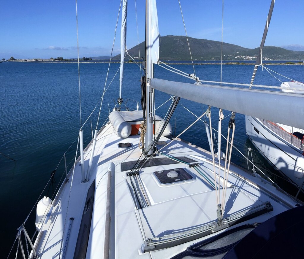 Sailing yacht Oceanis 43 Whisper, built in 2011 is anchored in the Athens, Alimos marina, Greece - Peloponnese, Greece. It has 4 cabins, can accommodate 8 + 2 people and has 2 toilets. Bed linen and kitchen equipment are included in the price.