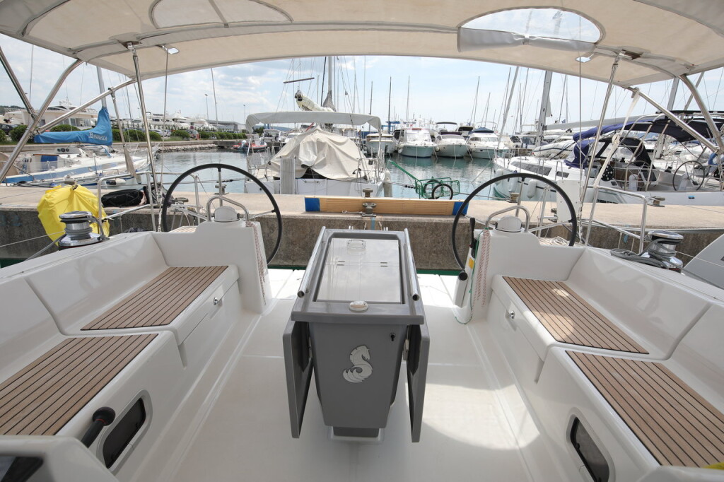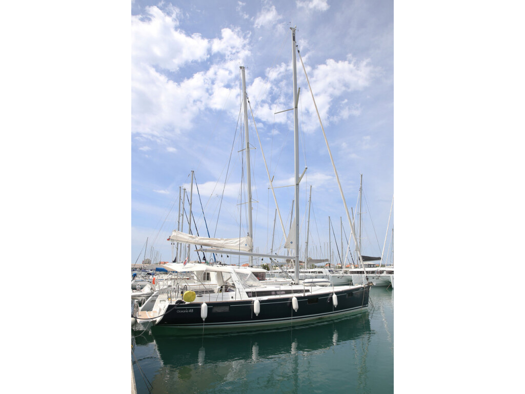 Sailing yacht Oceanis 48 San Clemente, built in 2017 is anchored in the Sukosan, D-Marin Dalmacija Marina, Croatia - Zadar, Croatia. It has 5 cabins, can accommodate 10 + 2 people and has 3 toilets. Bed linen and kitchen equipment are included in the price.