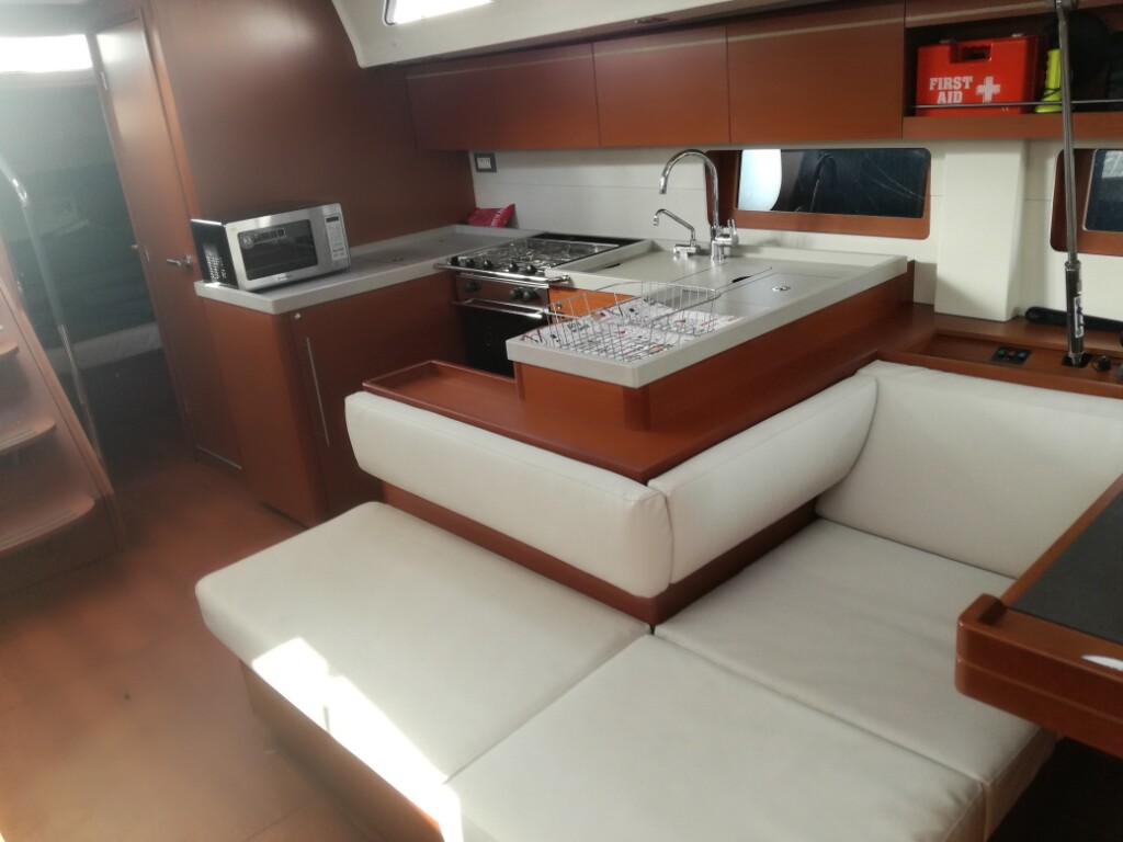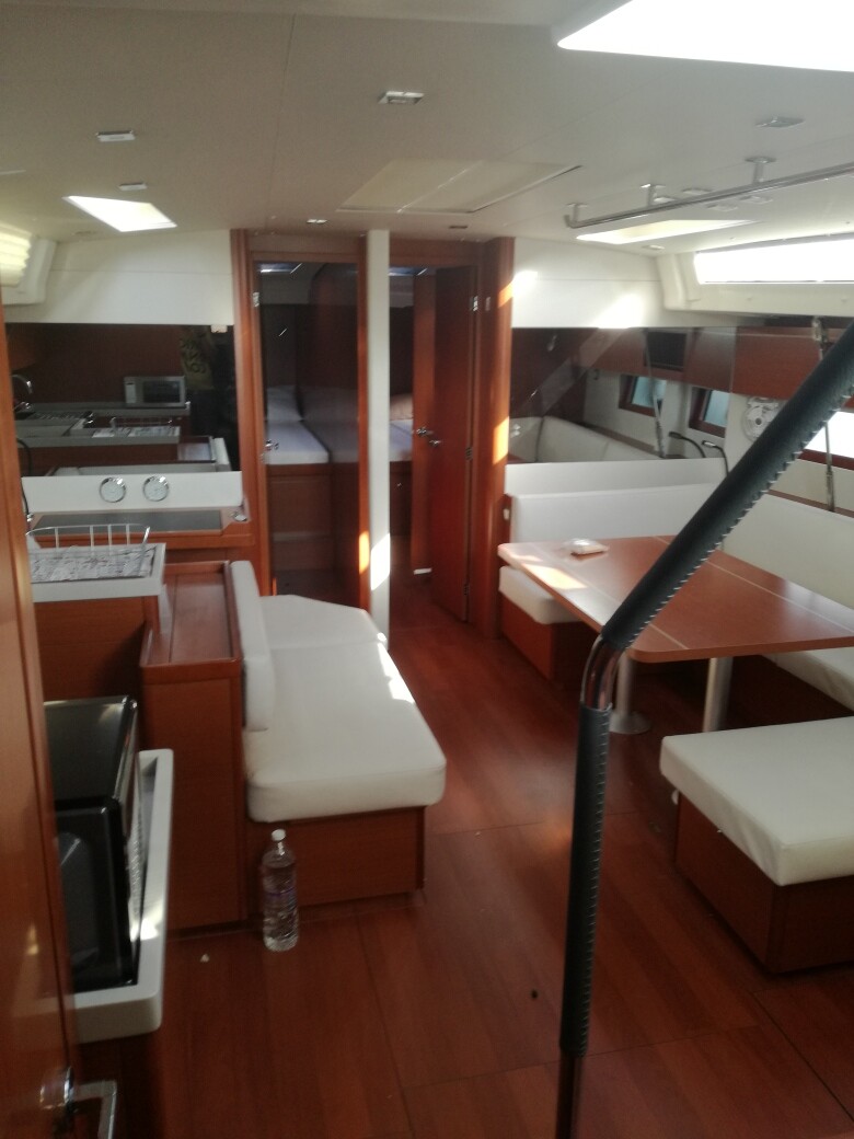 Sailing yacht Oceanis 51.1 Aeolian Muse, built in 2019 is anchored in the Preveza Marina, Greece - Ionian Islands, Greece. It has 4 + 1 cabins, can accommodate 8 + 2 + 1 people and has 4 + 1 toilets. Bed linen and kitchen equipment are included in the price.