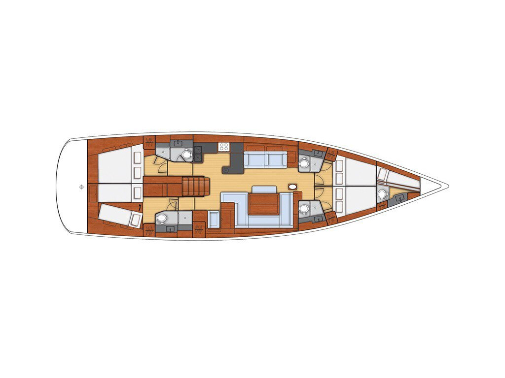 Sailing yacht Oceanis 60 Eol I, built in 2015 is anchored in the ACI Marina Split, Croatia - Split, Croatia. It has 4 + 1 cabins, can accommodate 8 + 1 + 2 people and has 4 toilets. Bed linen and kitchen equipment are included in the price.