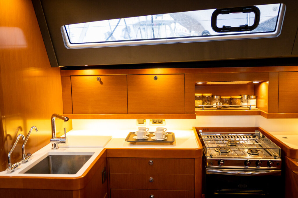 Sailing yacht Oceanis 60 Ultreya, built in 2017 is anchored in the Lefkas main port, Greece - Ionian Islands, Greece. It has 3 + 1 cabins, can accommodate 6 + 2 + 2 people and has 4 toilets. Bed linen and kitchen equipment are included in the price.