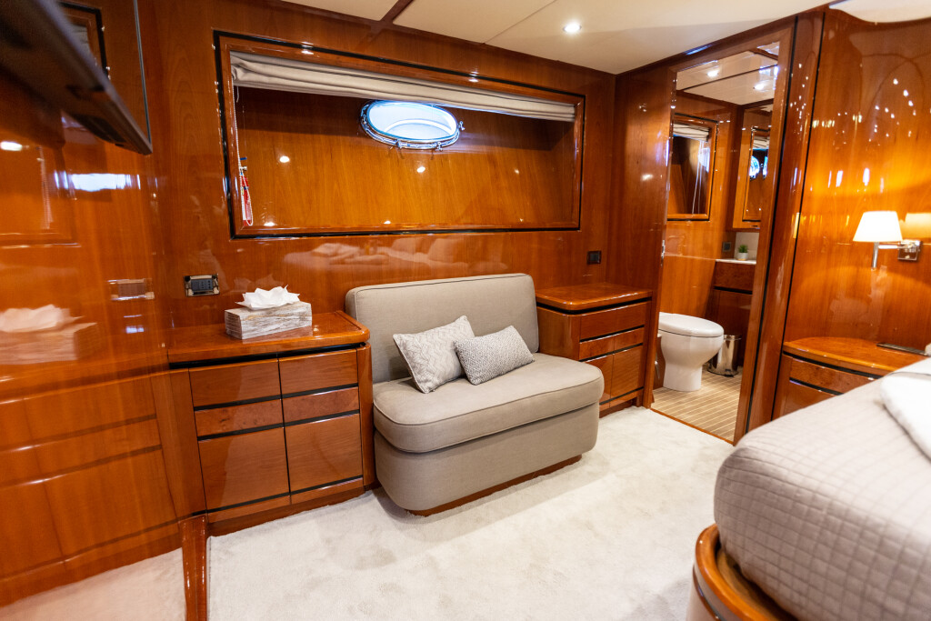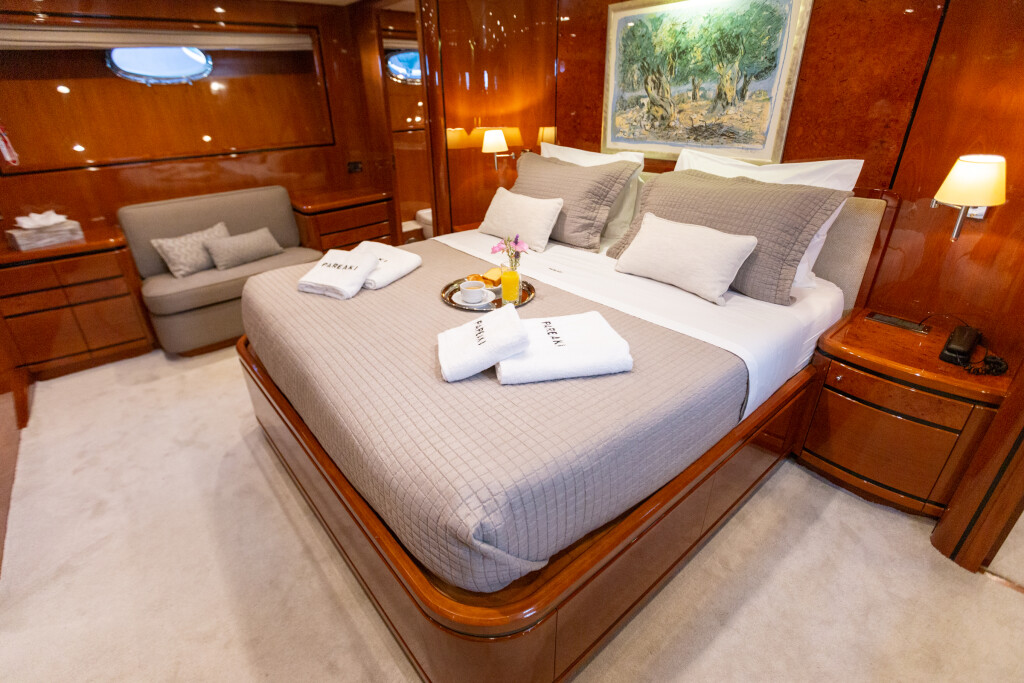 Luxury motor yacht Posillipo Technema 80 Pareaki, built in 2003 is anchored in the Athens, Alimos marina, Greece - Peloponnese, Greece. It has 4 + 2 cabins, can accommodate 8 + 2 + 2 people and has 4 toilets. Bed linen and kitchen equipment are included in the price.