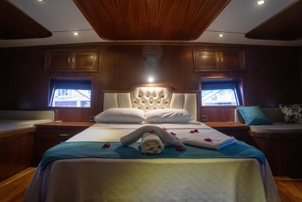 Gulet Queen D. Queen D., built in 2019 is anchored in the Bodrum, Milta Marina, Turkey - Aegean, Turkey. It has 7 cabins, can accommodate 14 people and has 7 toilets. Bed linen and kitchen equipment are included in the price.