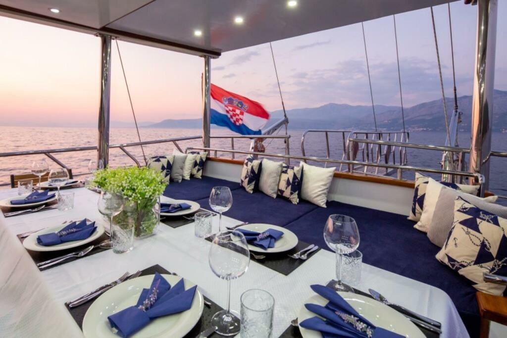 Gulet Saint Luca Saint Luca, built in 2019 is anchored in the Omiš, Croatia - Split, Croatia. It has 5 cabins, can accommodate 10 people and has 5 toilets. Bed linen and kitchen equipment are included in the price.