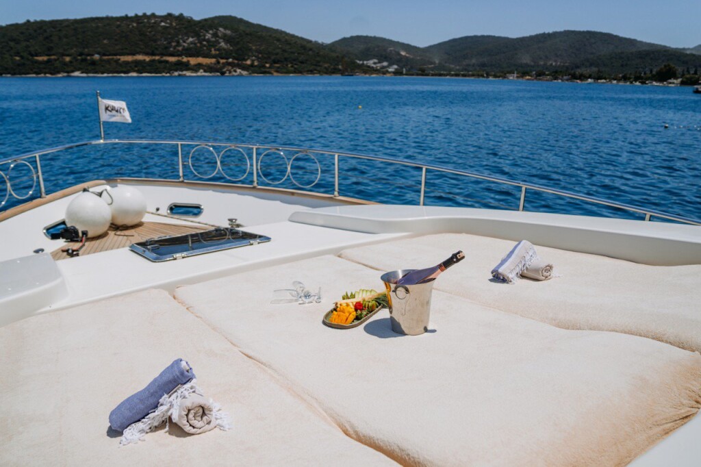 Luxury motor yacht San Lorenzo 72 Kuum, built in 2009 is anchored in the Bodrum Harbour, Turkey - Aegean, Turkey. It has 4 cabins, can accommodate 7 + 2 people and has 4 toilets. Bed linen and kitchen equipment are included in the price.