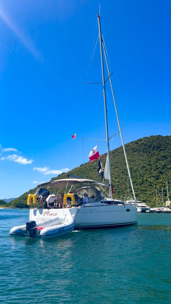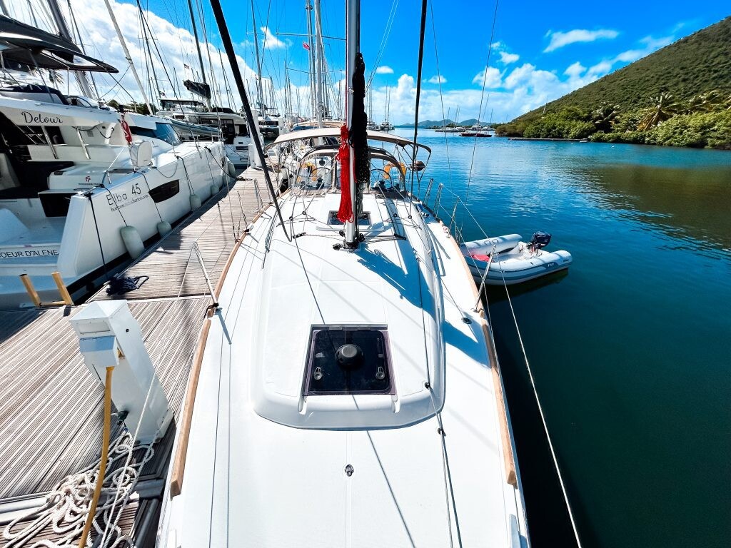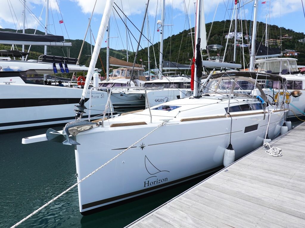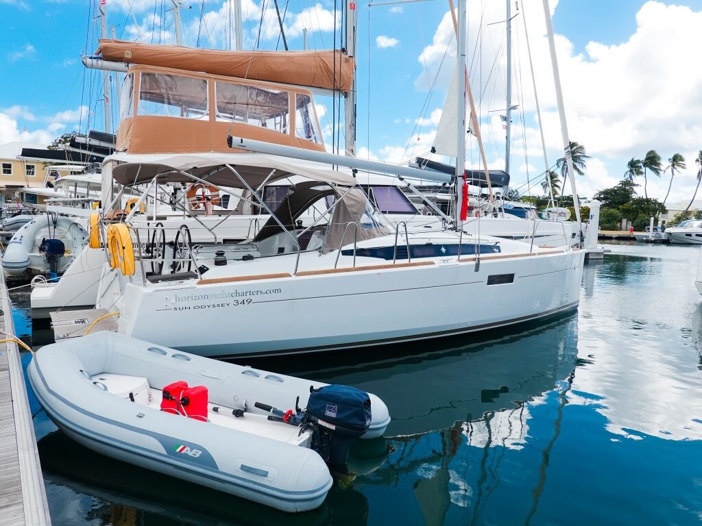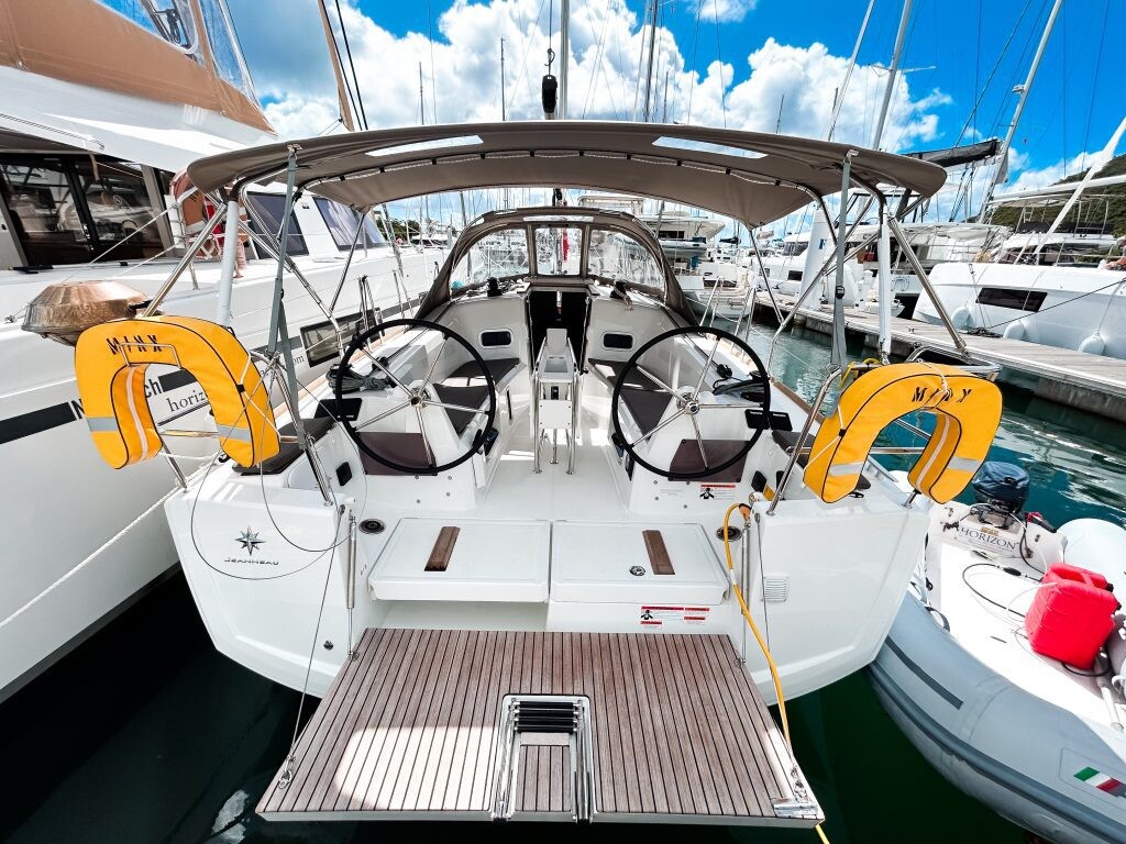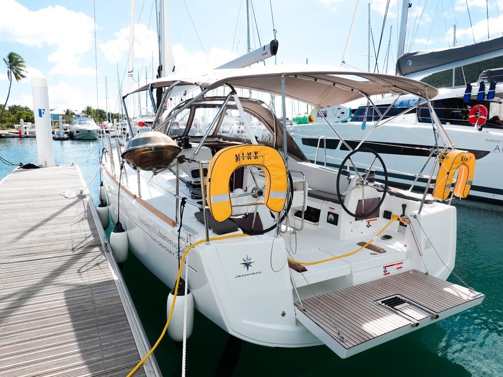 Sailing yacht Sun Odyssey 349 Minx, built in 2024 is anchored in the BVI, Tortola, Nanny Cay Marina, British Virgin Islands - British-Virgin Islands, British Virgin Islands. It has 3 cabins, can accommodate 6 people and has 1 toilets. Bed linen and kitchen equipment are included in the price.