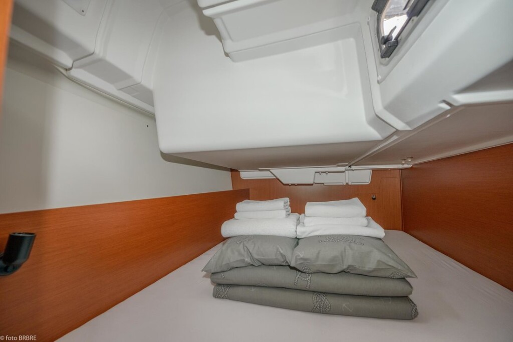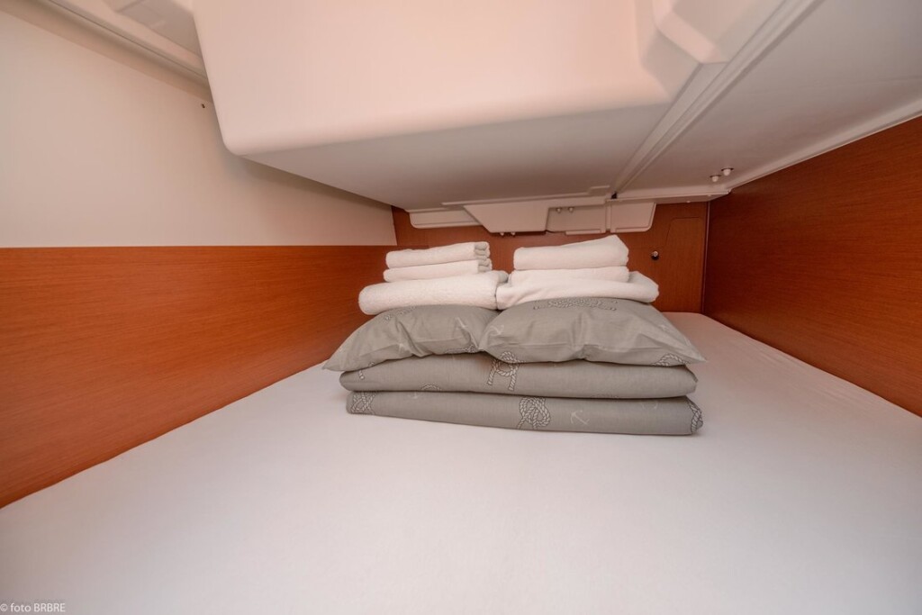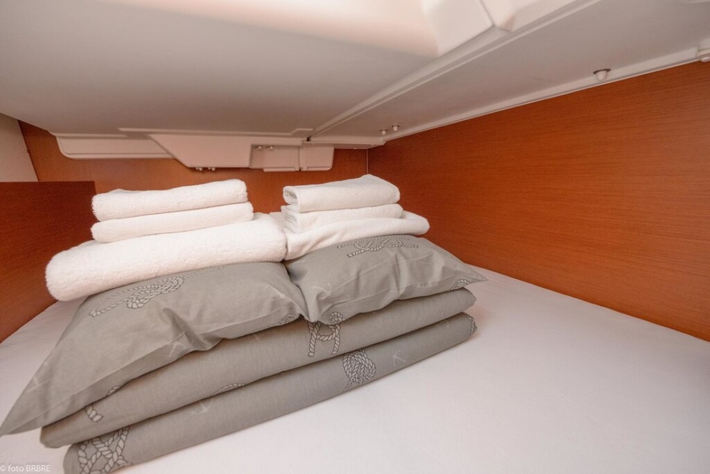 Sailing yacht Sun Odyssey 349 Popeye, built in 2017 is anchored in the Marina Pirovac, Croatia - Sibenik, Croatia. It has 3 cabins, can accommodate 6 + 1 people and has 1 toilets. Bed linen and kitchen equipment are included in the price.