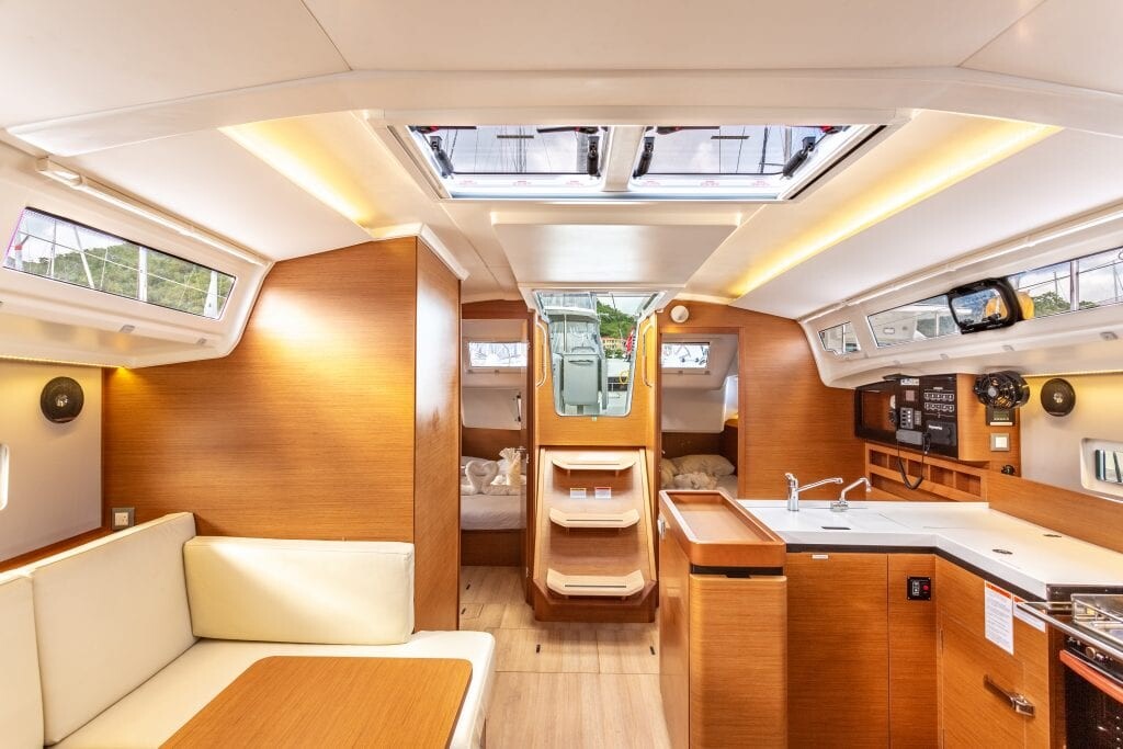The Sun Odyssey 410 is particularly popular due to its special equipment such as Cockpit cushions, Autopilot, GPS chart plotter, Inverter, Life jackets, Microwave, Air Conditioning, Generator. If you have any questions, our team will be happy to answer them personally!