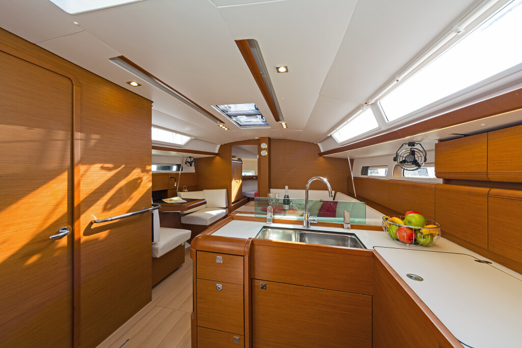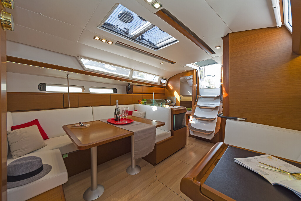 The Sun Odyssey 419 is particularly popular due to its special equipment such as Bathing platform, Electric toilet, Solar panels, Life jackets, Autopilot, Cockpit cushions, GPS chart plotter, Bow thruster. If you have any questions, our team will be happy to answer them personally!