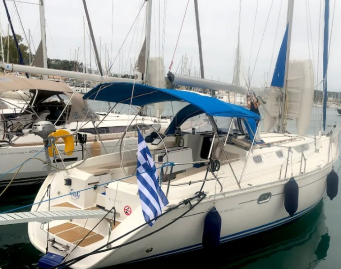Sailing yacht Sun Odyssey 42.2 Stefi, built in 1996 is anchored in the Corfu, Gouvia Marina, Greece - Ionian Islands, Greece. It has 4 cabins, can accommodate 8 people and has 2 toilets. Bed linen and kitchen equipment are included in the price.