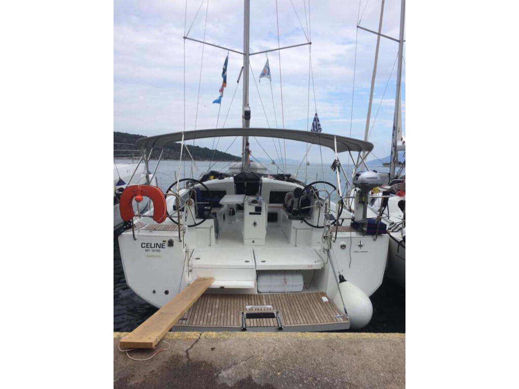 Sailing yacht Sun Odyssey 440 Celine, built in 2019 is anchored in the Corfu, Gouvia Marina, Greece - Ionian Islands, Greece. It has 4 cabins, can accommodate 8 + 2 people and has 2 toilets. Bed linen and kitchen equipment are included in the price.