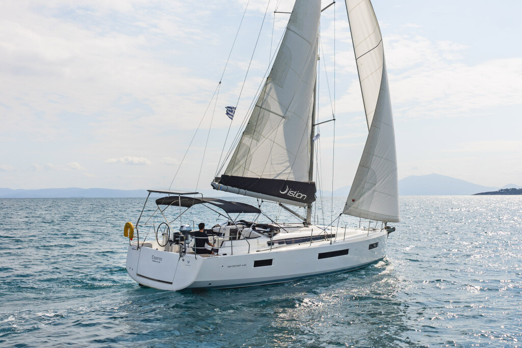 Sailing yacht Sun Odyssey 440 Esperos, built in 2022 is anchored in the Volos, Greece - Thessaly, Greece. It has 4 cabins, can accommodate 8 people and has 2 toilets. Bed linen and kitchen equipment are included in the price.