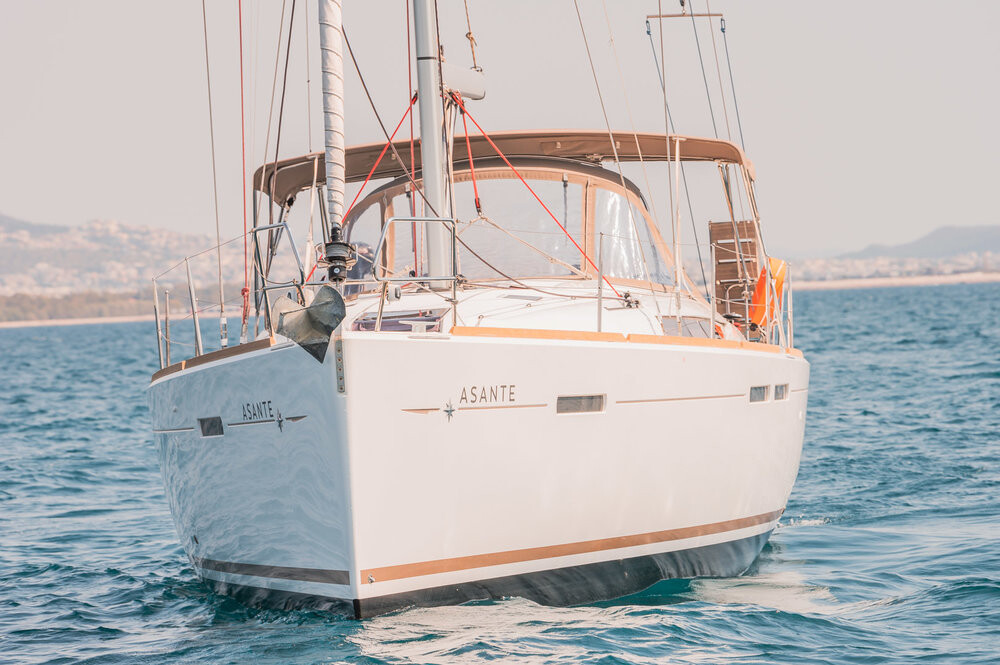 Sailing yacht Sun Odyssey 449 Asante, built in 2018 is anchored in the Lefkas, D-Marin, Greece - Ionian Islands, Greece. It has 4 cabins, can accommodate 8 + 2 people and has 2 toilets. Bed linen and kitchen equipment are included in the price.