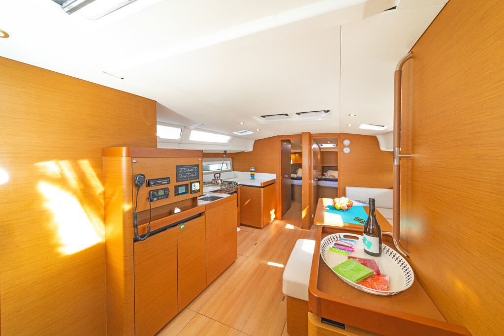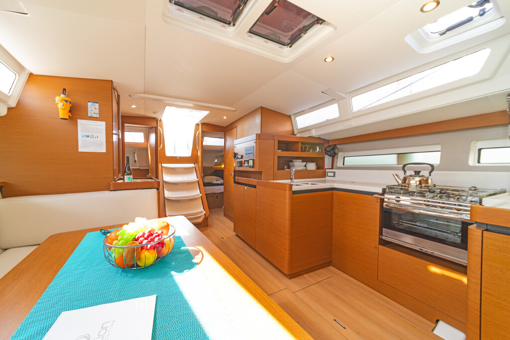 The Sun Odyssey 490 is particularly popular due to its special equipment such as Generator, Air Conditioning, Solar panels, Autopilot, Bathing platform, Bow thruster, Cockpit cushions, Electric toilet. If you have any questions, our team will be happy to answer them personally!