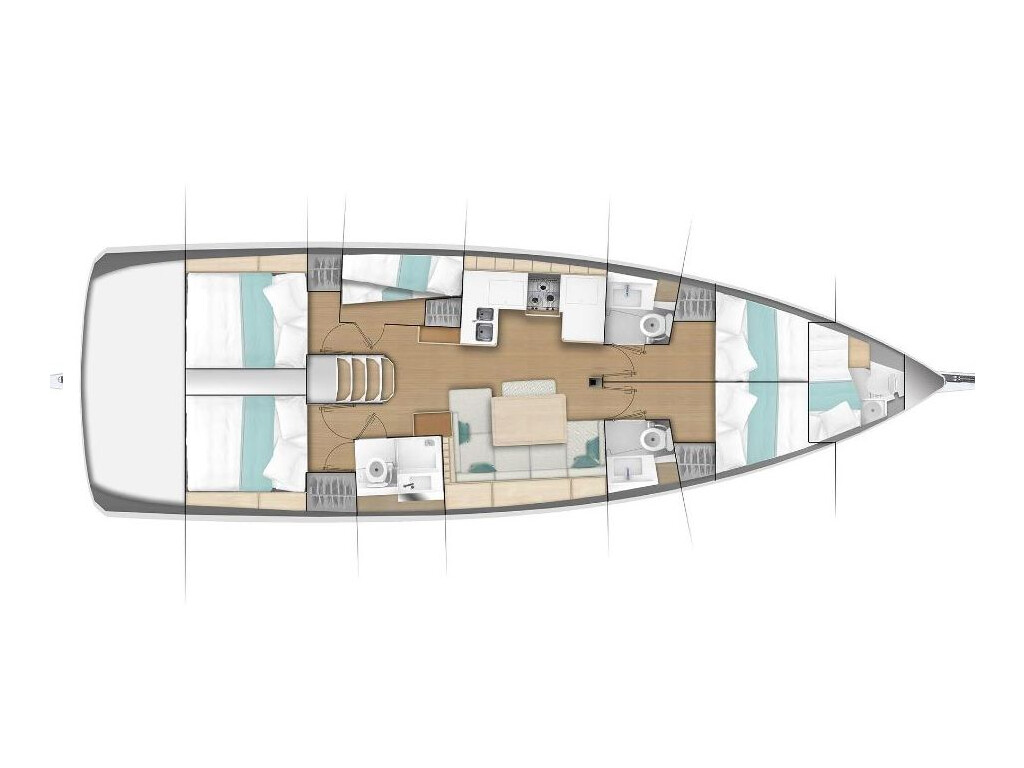 Sailing yacht Sun Odyssey 490 Izzy, built in 2023 is anchored in the Rogač (Šolta), Croatia - Split, Croatia. It has 5 + 1 cabins, can accommodate 10 + 2 people and has 3 + 1 toilets. Bed linen and kitchen equipment are included in the price.