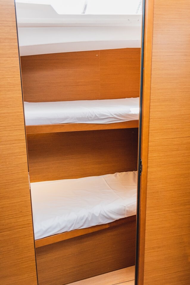 Sailing yacht Sun Odyssey 490 Nonna, built in 2019 is anchored in the Marina Mandalina, Sibenik, Croatia - Sibenik, Croatia. It has 5 + 1 cabins, can accommodate 10 + 2 + 1 people and has 5 toilets. Bed linen and kitchen equipment are included in the price.