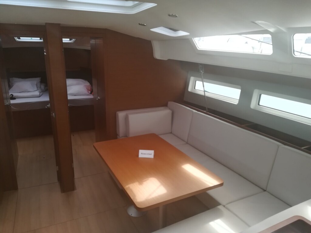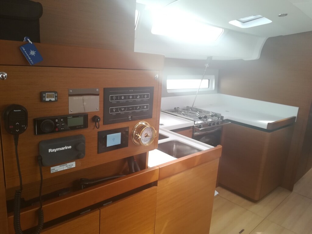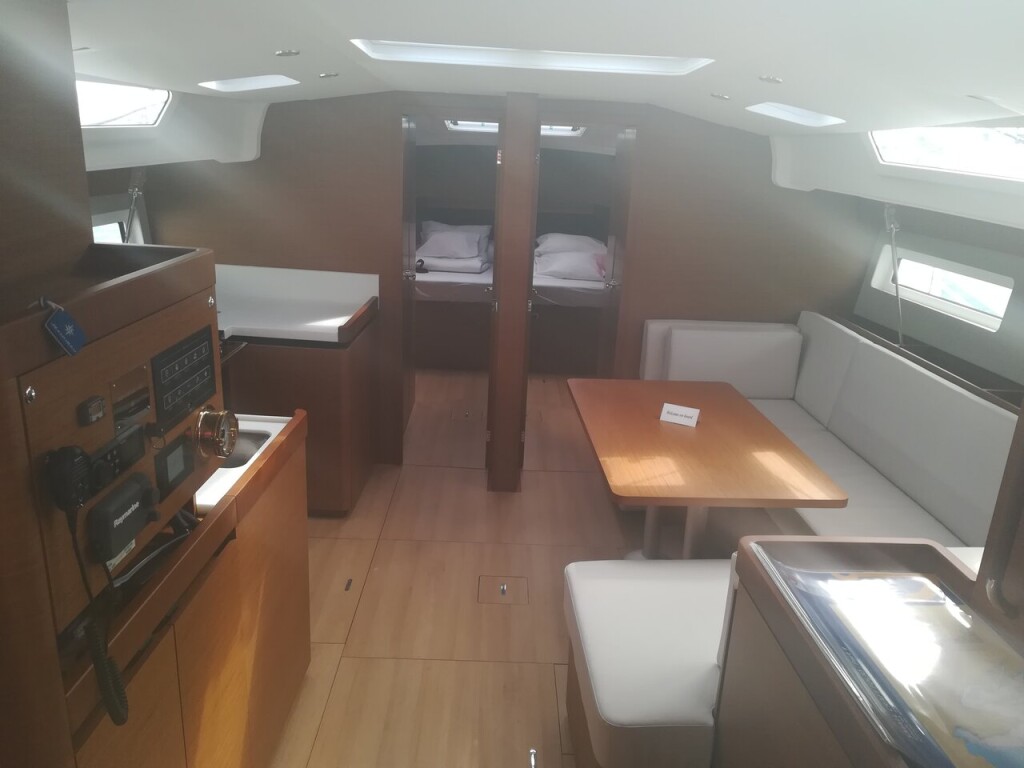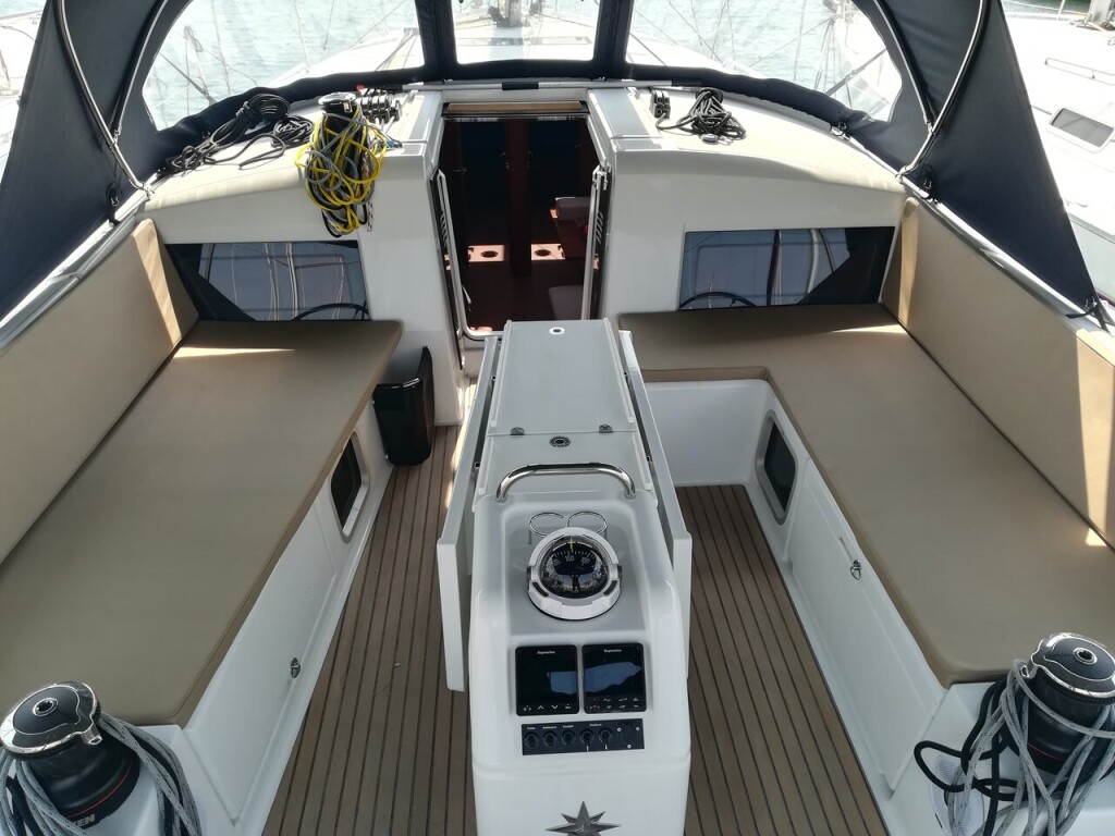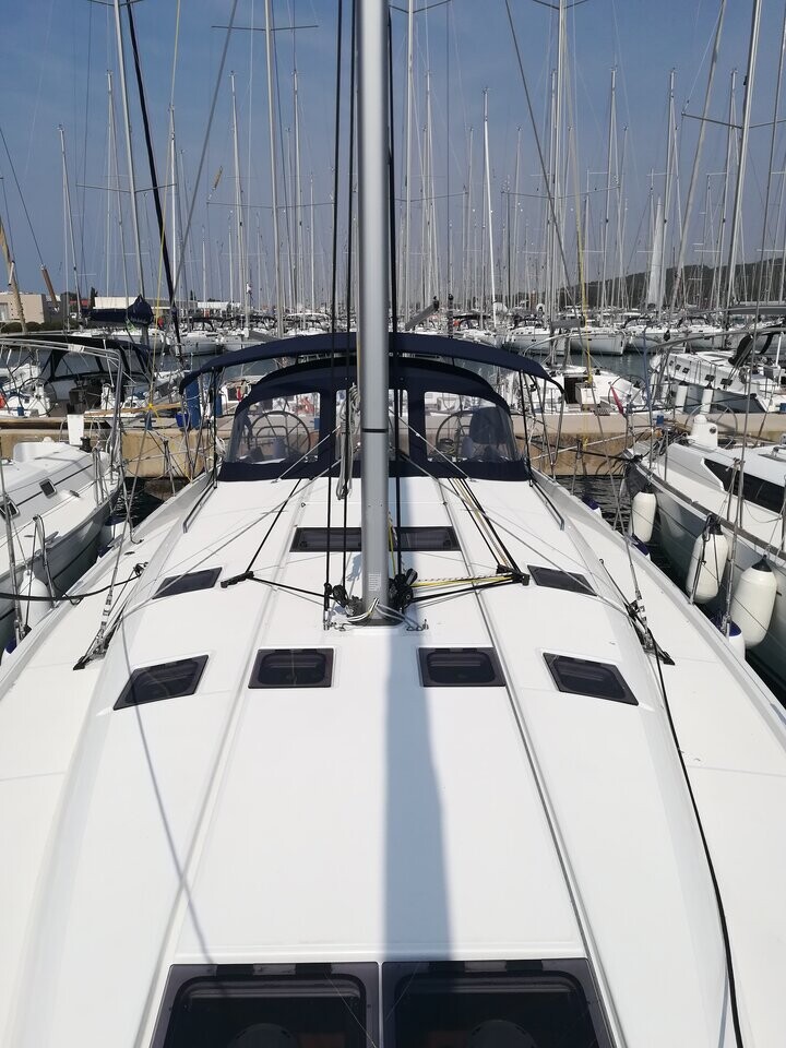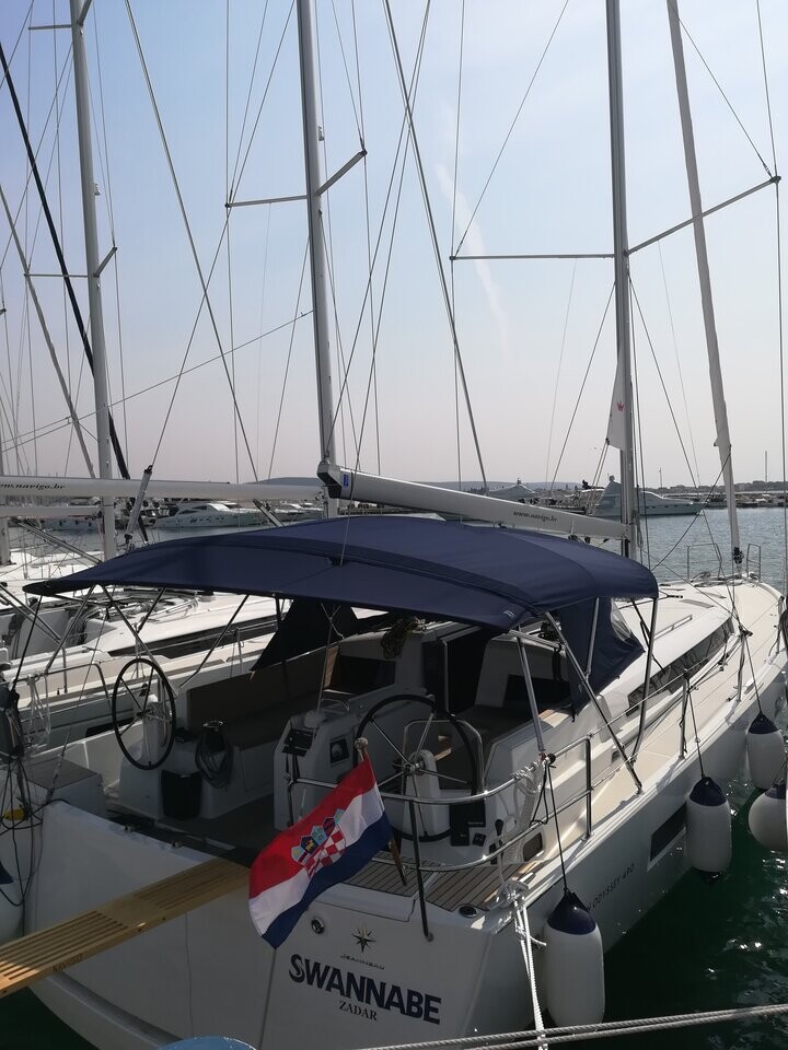 Sailing yacht Sun Odyssey 490 Swannabe, built in 2019 is anchored in the Sukosan, D-Marin Dalmacija Marina, Croatia - Zadar, Croatia. It has 5 + 1 cabins, can accommodate 10 + 2 people and has 3 + 1 toilets. Bed linen and kitchen equipment are included in the price.