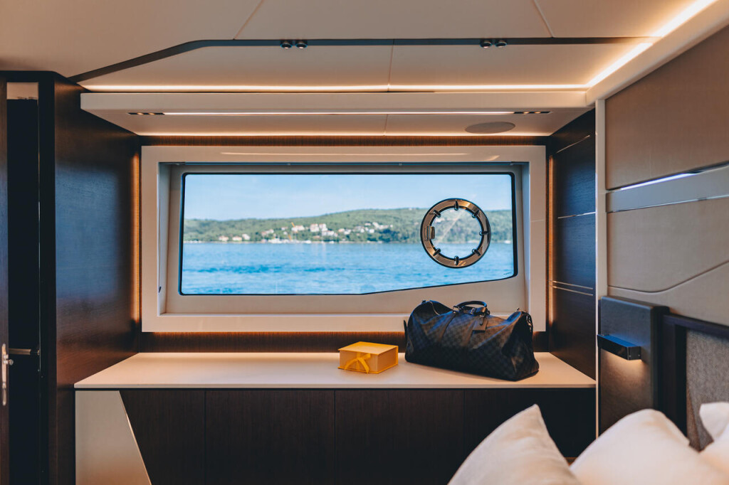 Motor yacht Sunseeker 65 Sport Yacht K2, built in 2022 is anchored in the ACI Marina Split, Croatia - Split, Croatia. It has 3 cabins, can accommodate 6 + 2 people and has 4 toilets. Bed linen and kitchen equipment are included in the price.