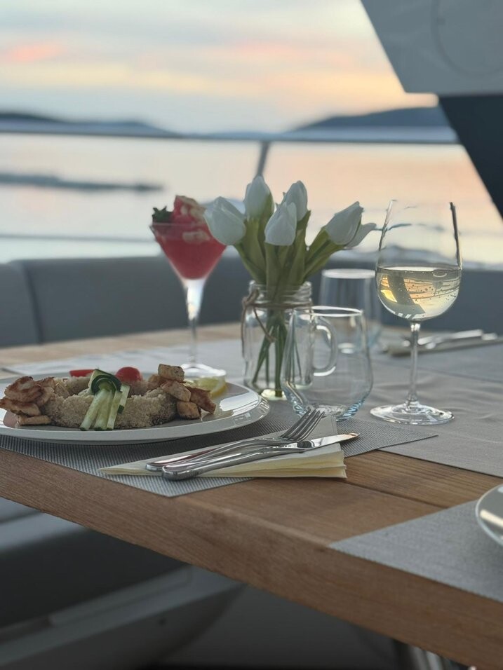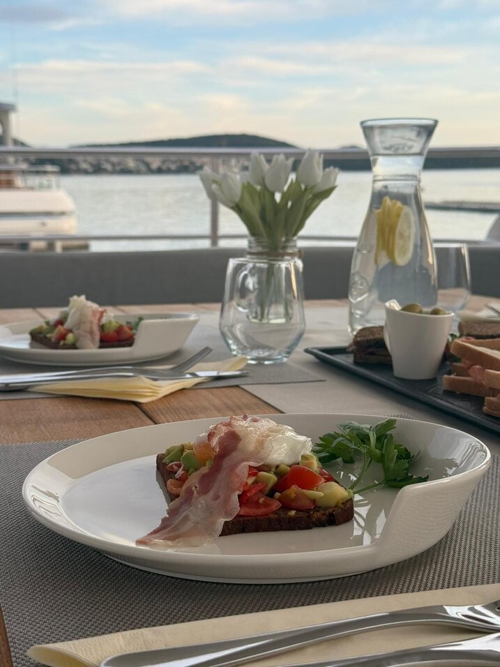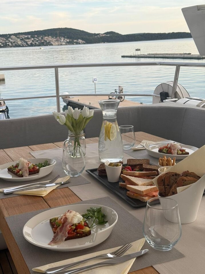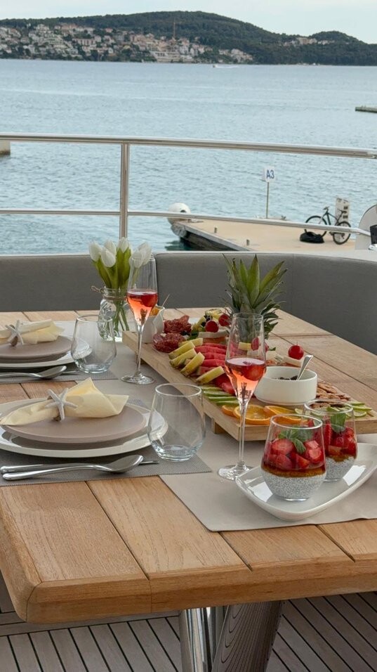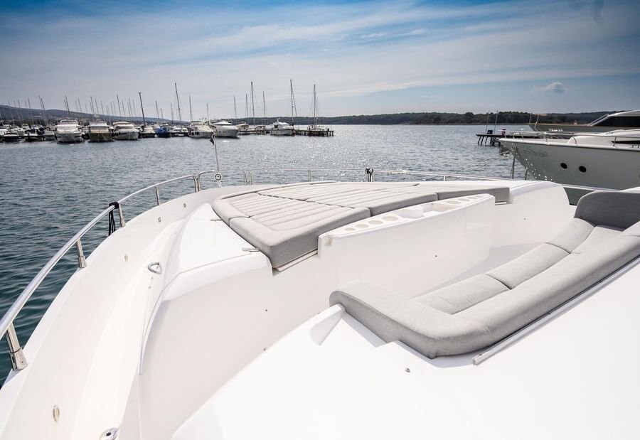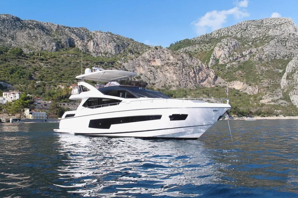 Motor yacht Sunseeker 75 Opal Adriatic, built in 2016 is anchored in the Trogir, Yachtclub Seget (Marina Baotić), Croatia - Split, Croatia. It has 3 cabins, can accommodate 6 people and has 3 toilets. Bed linen and kitchen equipment are included in the price.