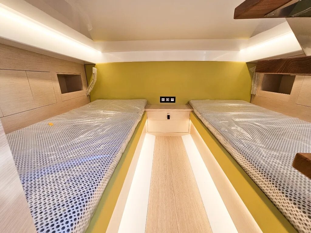 Motor boat Tesoro T40 Leo, built in 2023 is anchored in the Trogir, Yachtclub Seget (Marina Baotić), Croatia - Split, Croatia. It has 2 cabins, can accommodate 4 people and has 1 toilets. Bed linen and kitchen equipment are included in the price.