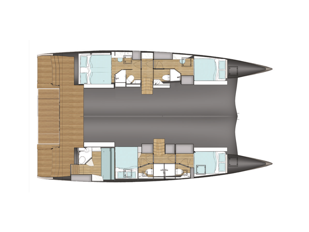 Catamaran Wave 50 Wave, built in 2021 is anchored in the Olbia, Italy - Sardinia, Italy. It has 4 + 1 cabins, can accommodate 8 + 2 + 2 people and has 4 + 1 toilets. Bed linen and kitchen equipment are included in the price.