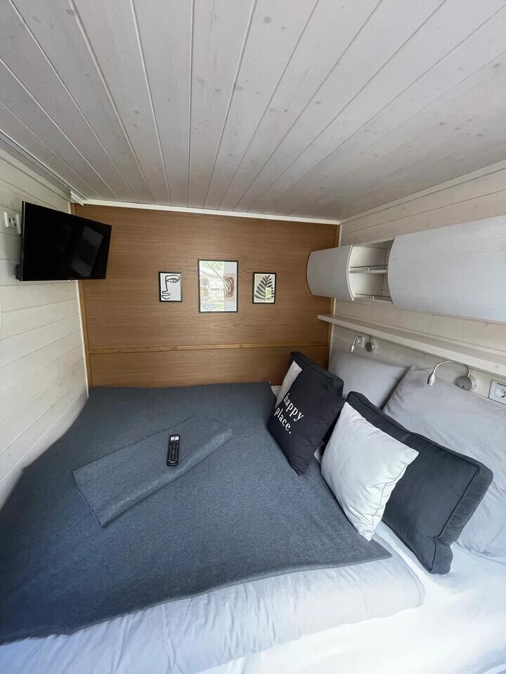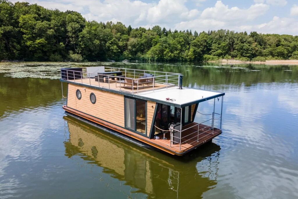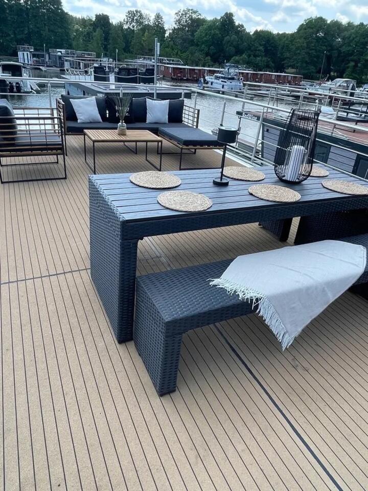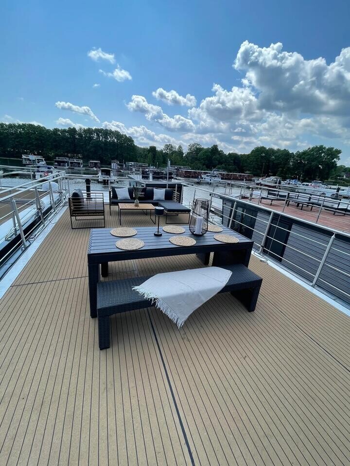 House boat Woma D13* Enjoy, built in 2022 is anchored in the Röblinsee Marina, Germany - Brandenburg, Germany. It has 2 cabins, can accommodate 5 people and has 1 toilets. Bed linen and kitchen equipment are included in the price.