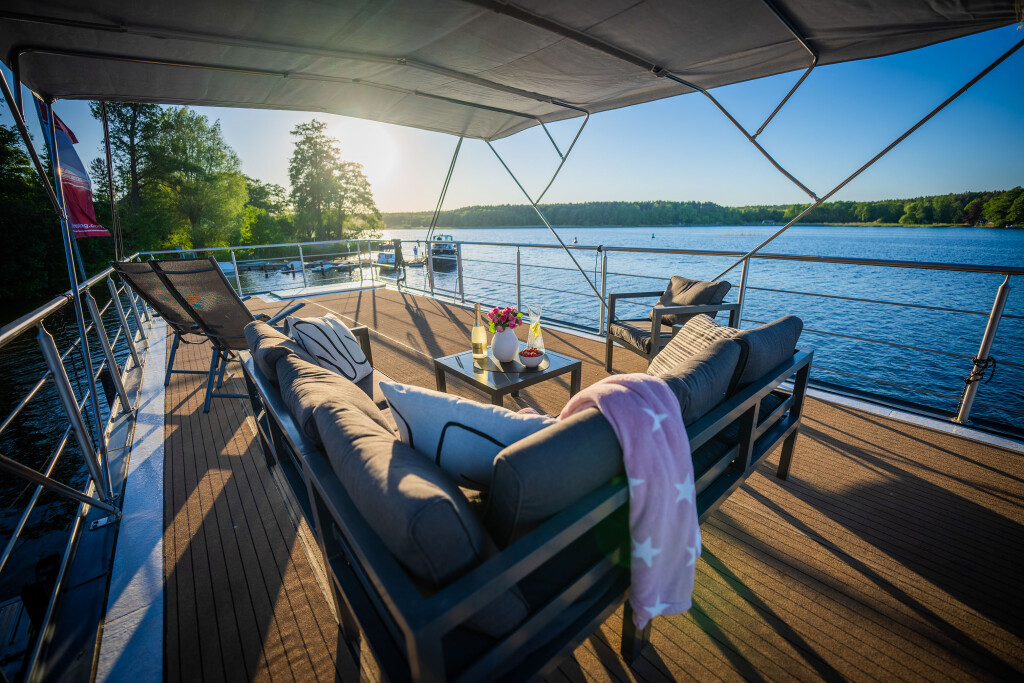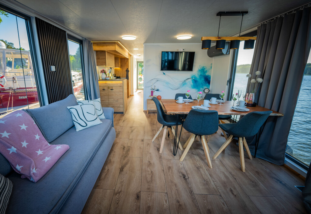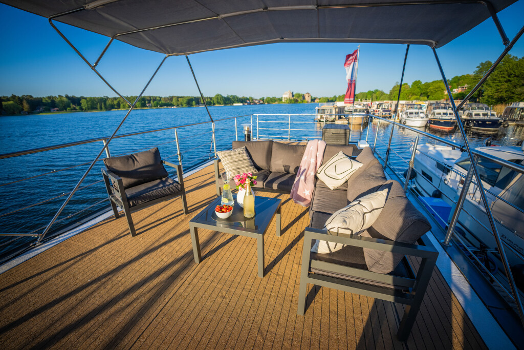 House boat Woma D13 Roma, built in 2023 is anchored in the Röblinsee Marina, Germany - Brandenburg, Germany. It has 2 cabins, can accommodate 7 people and has 1 toilets. Bed linen and kitchen equipment are included in the price.