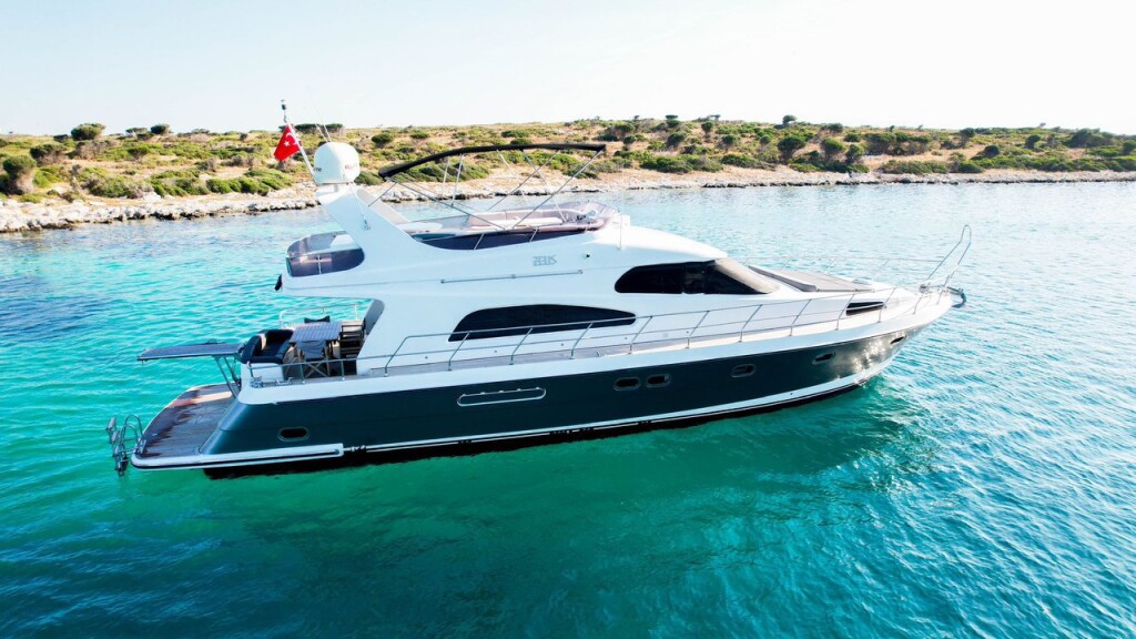Luxury motor yacht Zeus Zeus, built in 2015 is anchored in the Bodrum Harbour, Turkey - Aegean, Turkey. It has 2 + 1 cabins, can accommodate 4 + 2 people and has 2 toilets. Bed linen and kitchen equipment are included in the price.